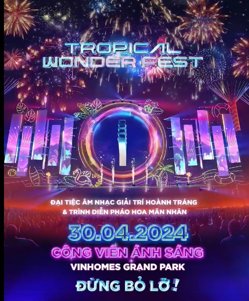 Lễ 30/4 sắp tới, bạn đã có kế hoạch “quẩy” tưng bừng chưa? Nếu chưa, hãy “lập hội” ngay từ bây giờ để đến Vinhomes Grand Park “cháy hết mình” cùng LỄ HỘI SẮC MÀU NHIỆT ĐỚI TROPICAL WONDER FEST – chuỗi hoạt động chào đón VinWonders Grand Park lần đầu tiên tại TP. Hồ Chí Minh.