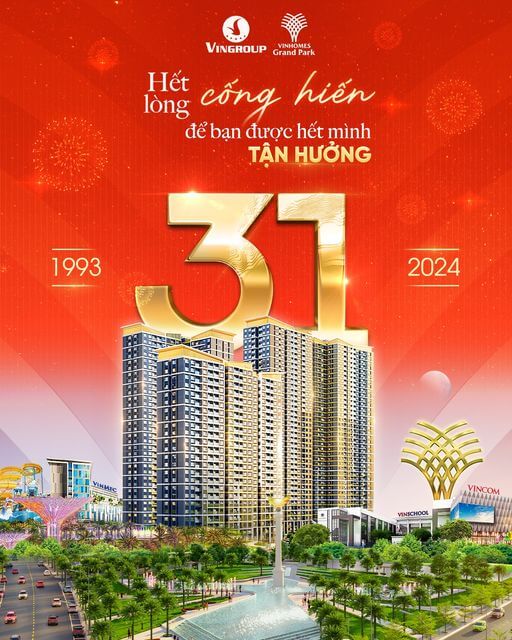 🌱 Nhân dịp kỷ niệm 31 năm thành lập Tập đoàn Vingroup, Vinhomes Grand Park xin được gửi lời cảm ơn chân thành nhất tới tất cả khách hàng, đối tác và đội ngũ vận hành đã luôn đồng hành cùng chúng tôi. Chính sự ủng hộ và tin yêu của bạn đã làm nên những thành tựu đáng giá của Vinhomes cũng như Vingroup! 💚