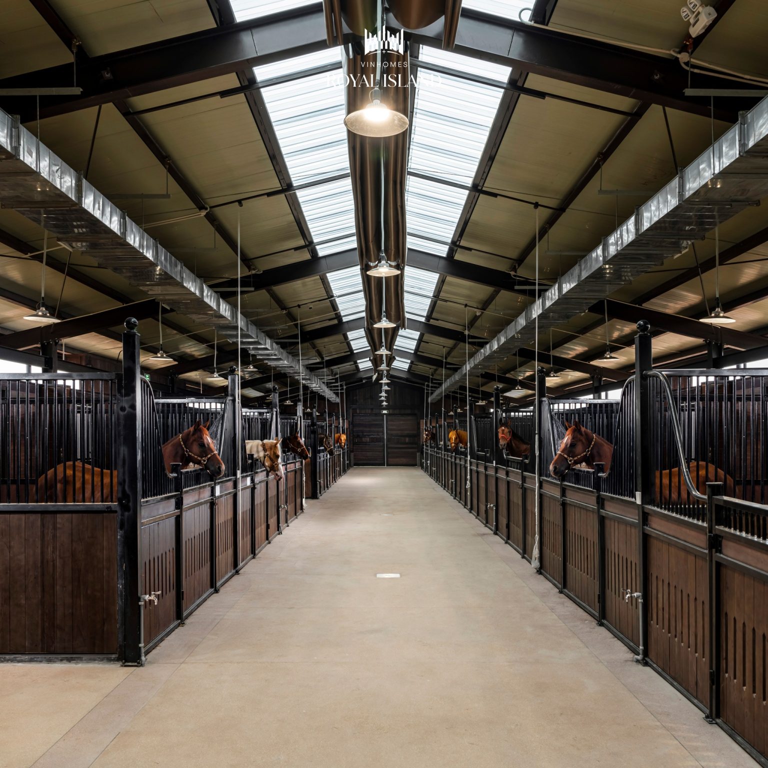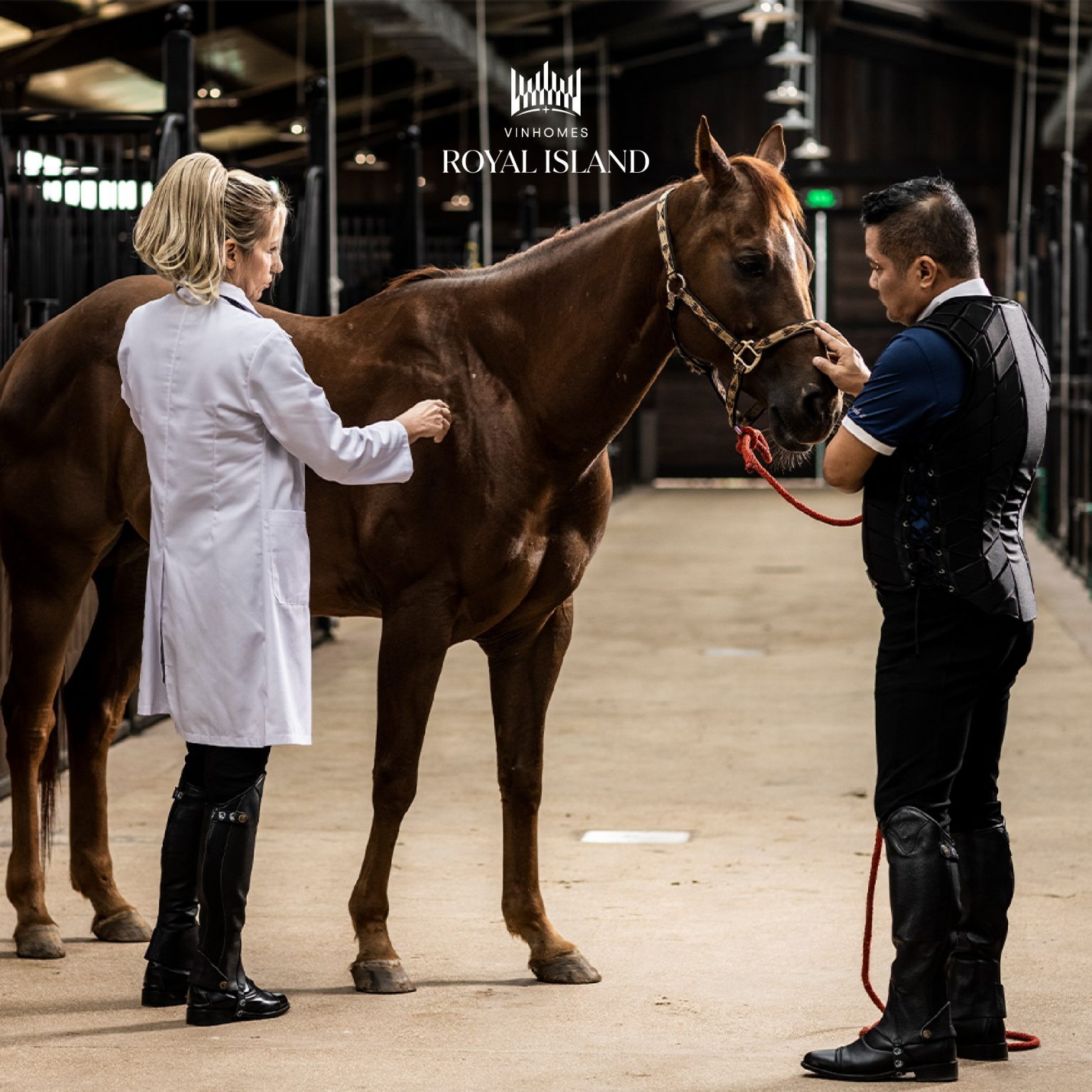 - Vinhomes Royal Island có 300 chuồng chăm sóc ngựa chuyên nghiệp, bao gồm bệnh viện thú y cao cấp và các khu vực chăm sóc sức khỏe ngựa với các tiện ích như khu tập cho ngựa, khu đóng móng… 100% ngựa được chăm sóc y tế theo tiêu chuẩn Quốc tế bởi đội ngũ chuyên gia nước ngoài, bao gồm bác sĩ thú y, chuyên gia huấn luyện, kiểm tra chất lượng móng chân, chải lông và giao tiếp tình cảm cùng ngựa…