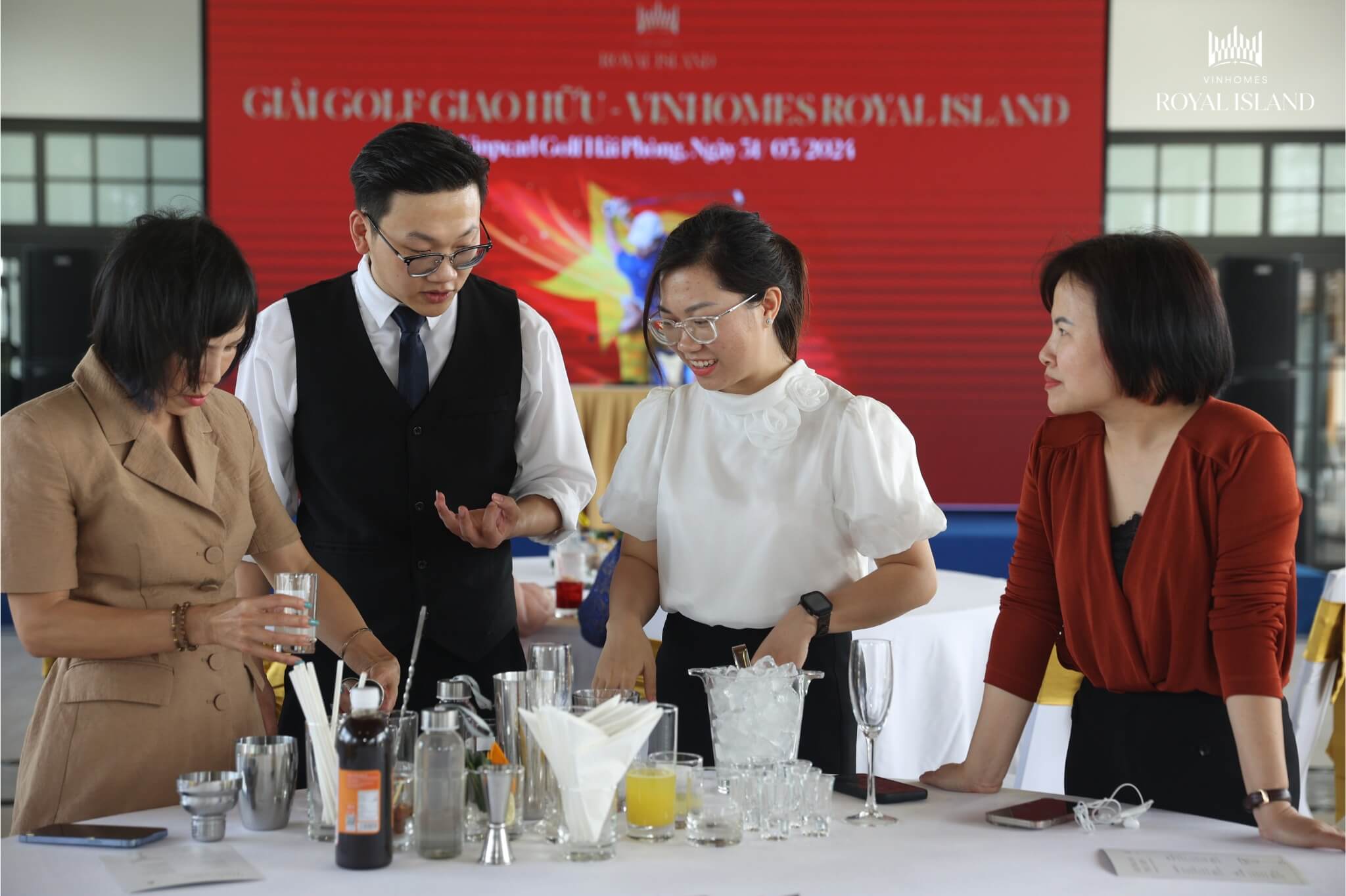 Bên cạnh đó vào buổi chiều của sự kiên, những chủ nhân tiên phong đã có được những trải nghiệm đặc quyền cho riêng mình: Tham gia Workshop pha chế Cocktail trong không gian nhạc acoustic du dương cùng canape tinh tế. Được tạo cảm hứng với những kỹ thuật infuse rượu để cho ra loại signature cocktail thú vị, các vị khách mời còn được chiêm ngưỡng những màn biểu diễn đẹp mắt cùng nghệ thuật trang trí đỉnh cao tới từ Chuyên gia pha chế hàng đầu Duy Khánh đến từ Almaz.
