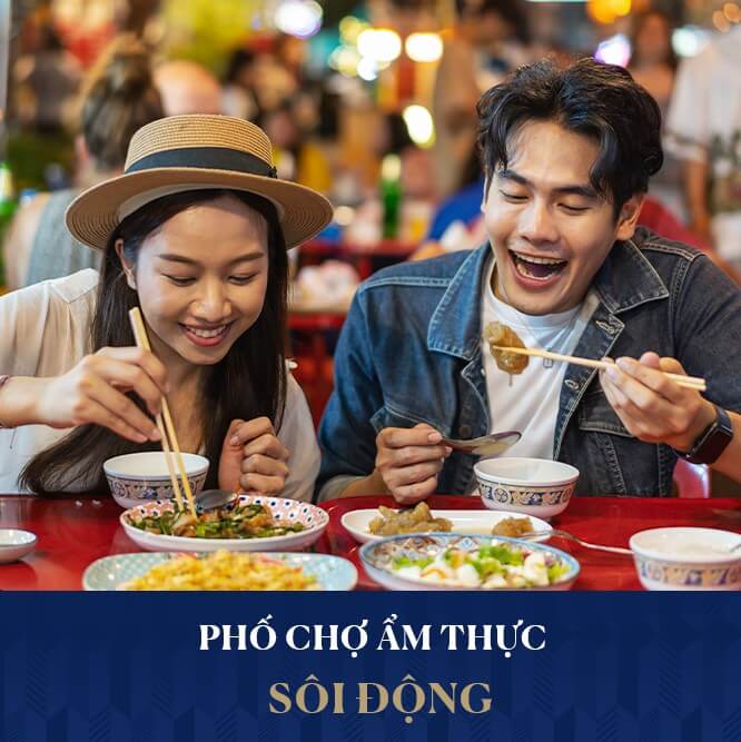 Phố chợ ẩm thực sôi động cùng chợ ẩm thực ven sông hấp dẫn nhất khu vực: Khách hàng sẽ được thưởng thức ẩm thực đường phố đa dạng: chợ đêm Hàn Quốc/Thái Lan, chợ đêm hải sản 3 miền, phố chợ thiên đường ăn vặt Hải Phòng…
