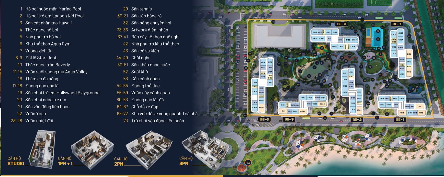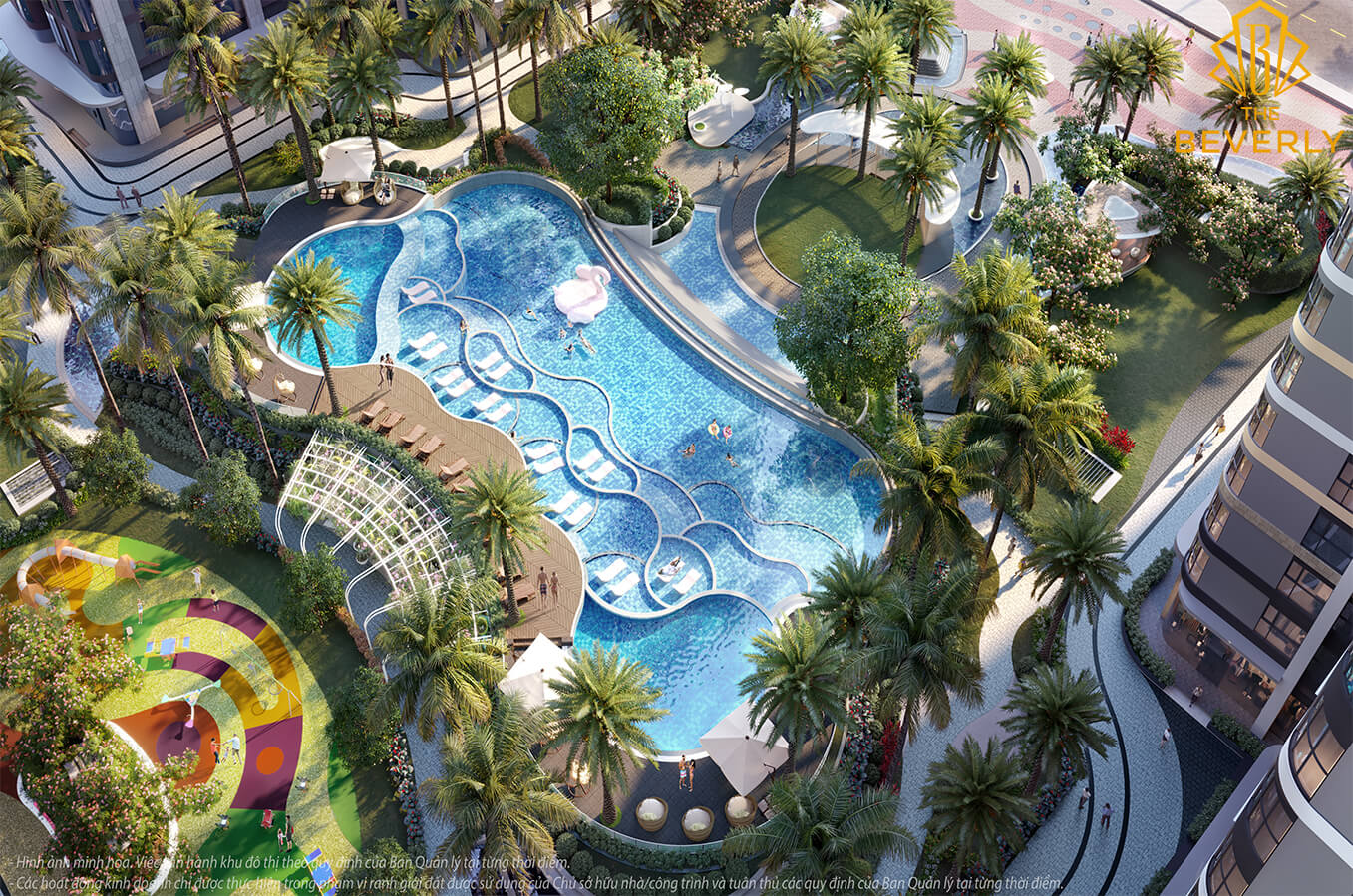 Phân khu The Beverly có tổng số 6 tòa căn hộ, các tòa căn hộ nằm bao quanh chuỗi tiện ích đa dạng được quy hoạch ở trung tâm.